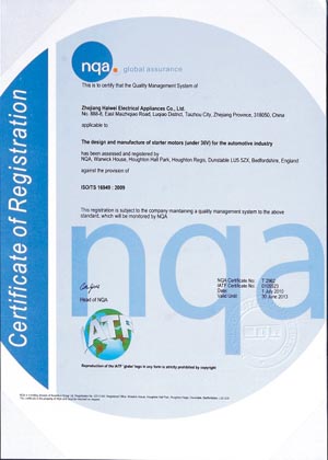 海威电器顺利通过NQA公司TS16949审核获得证书